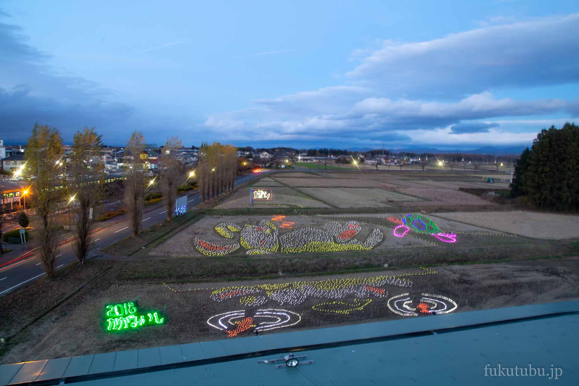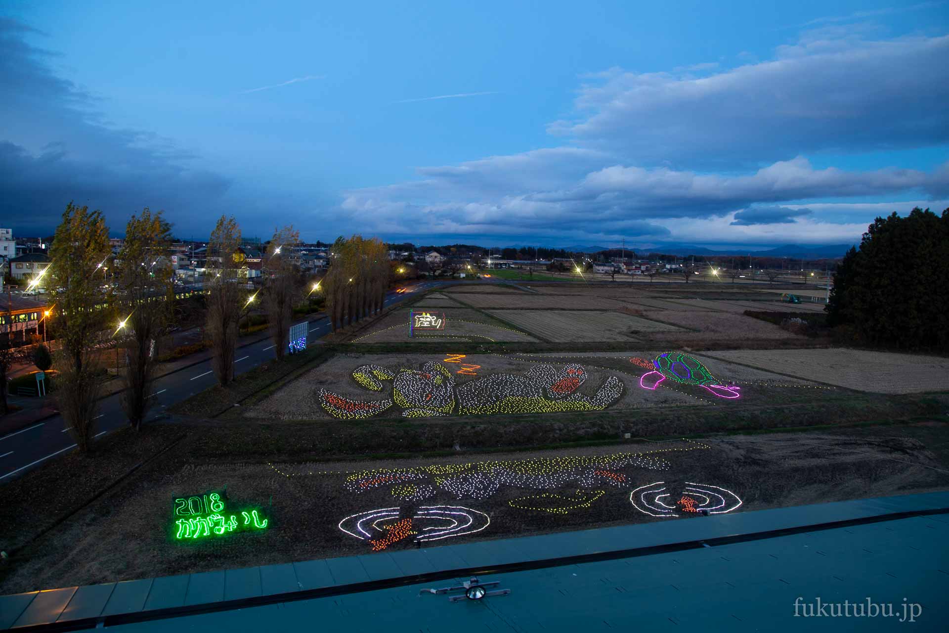 ユメに近づいた、夜に輝る田んぼアート 鏡石町 田んぼアートLEDイルミネーション