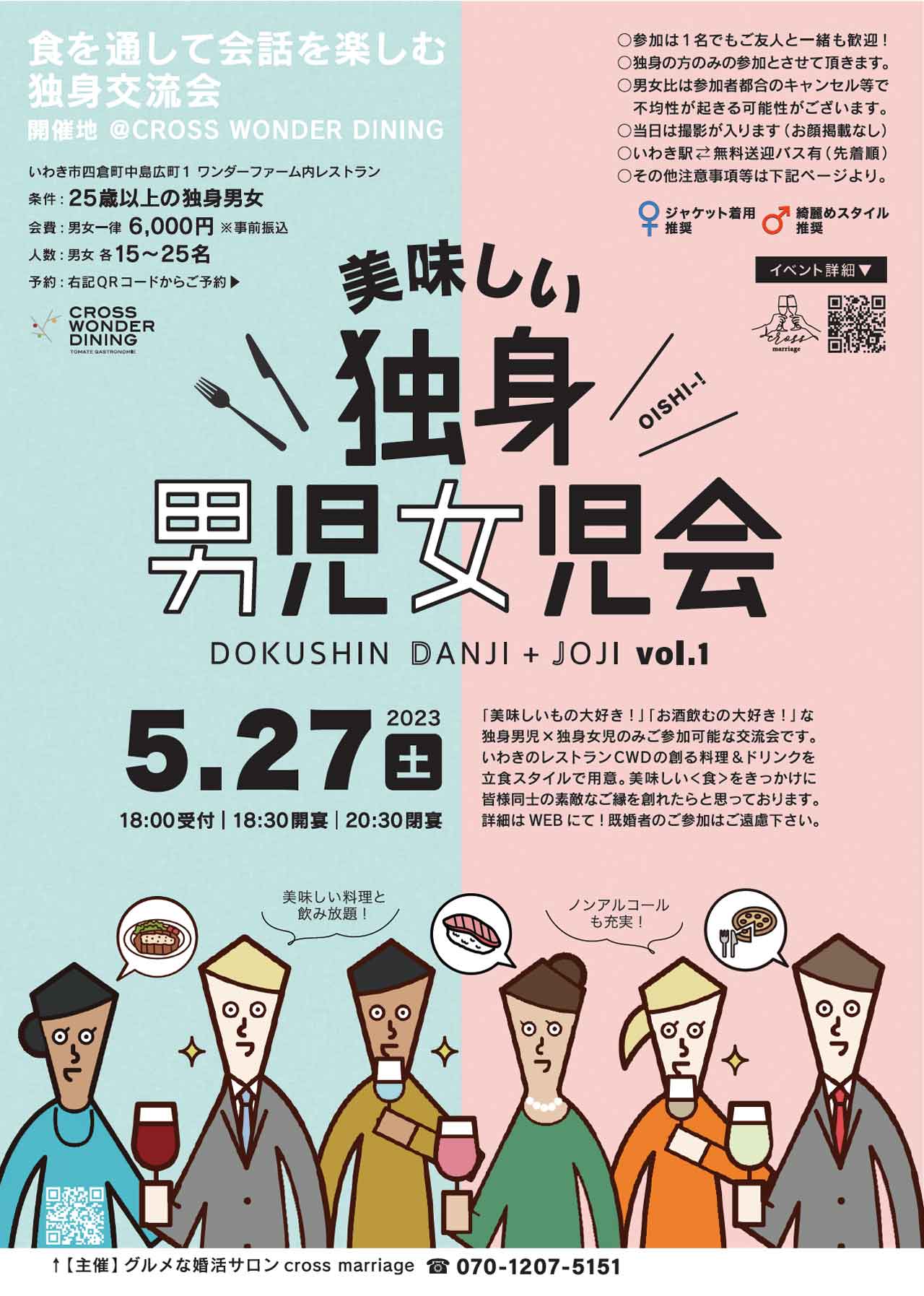 2023年5月27日(土)いわき市ワンダーファーム内レストランCROSS WONDER DININGにて、美味しい独身男児女児会が開催。