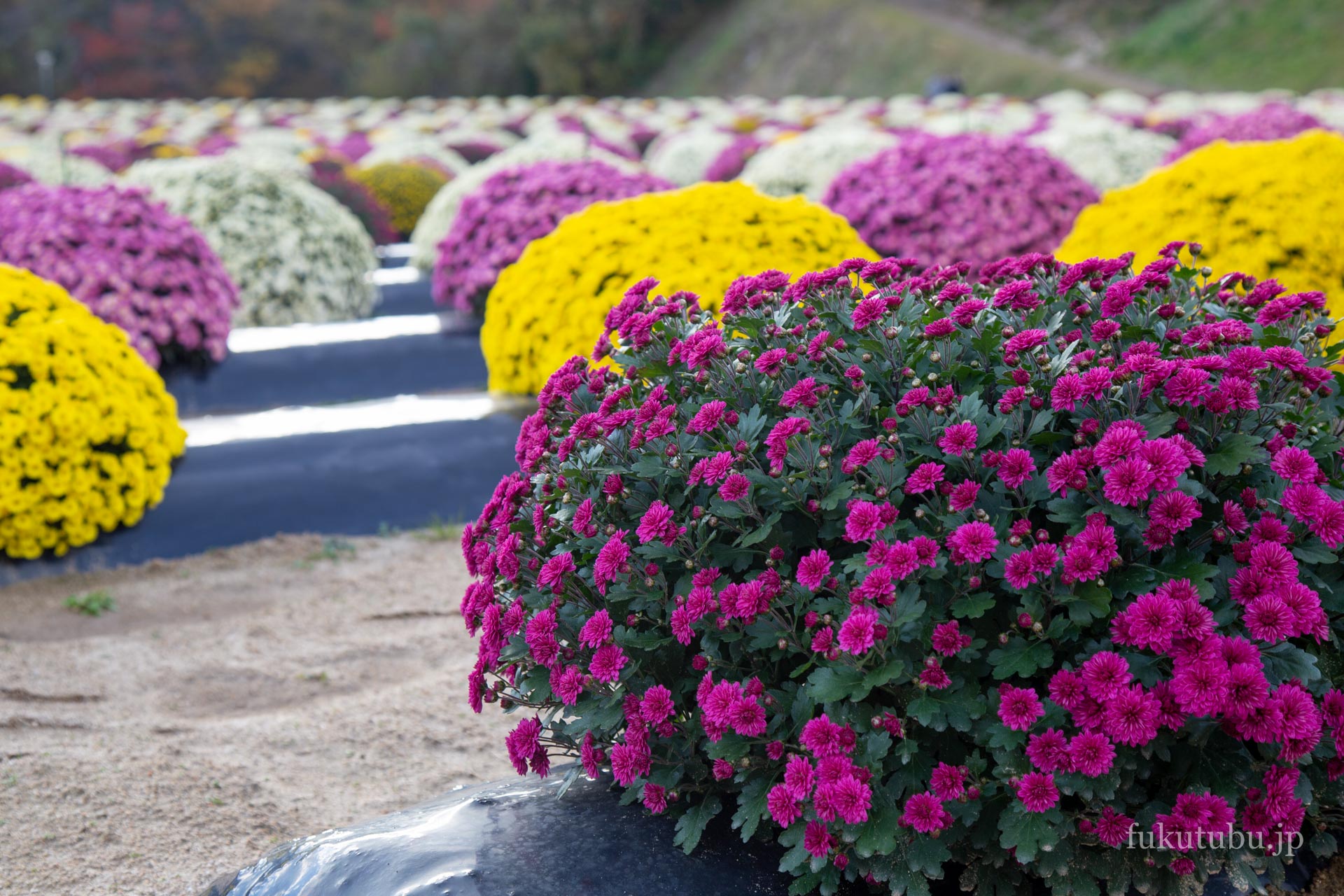 最近ではざる菊愛好家も増え、様々な場所で観賞を楽しむことができますが、菊の里ときわでは、広い農地だからこその迫力が楽しめます。