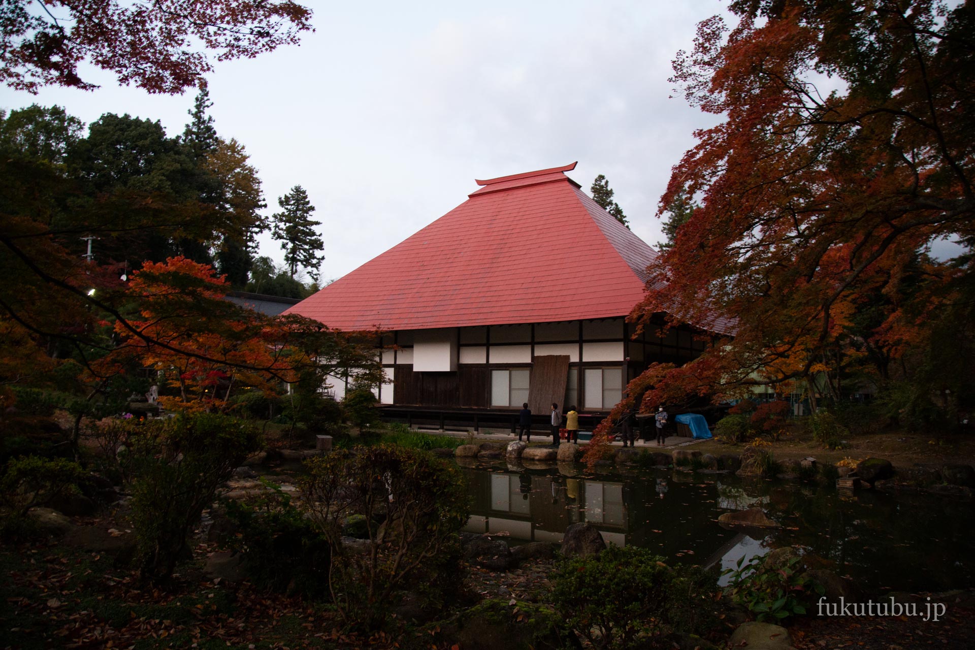 三春町内の紅葉の名所として、夜にはライトアップも行われるという三春町真照寺へ。