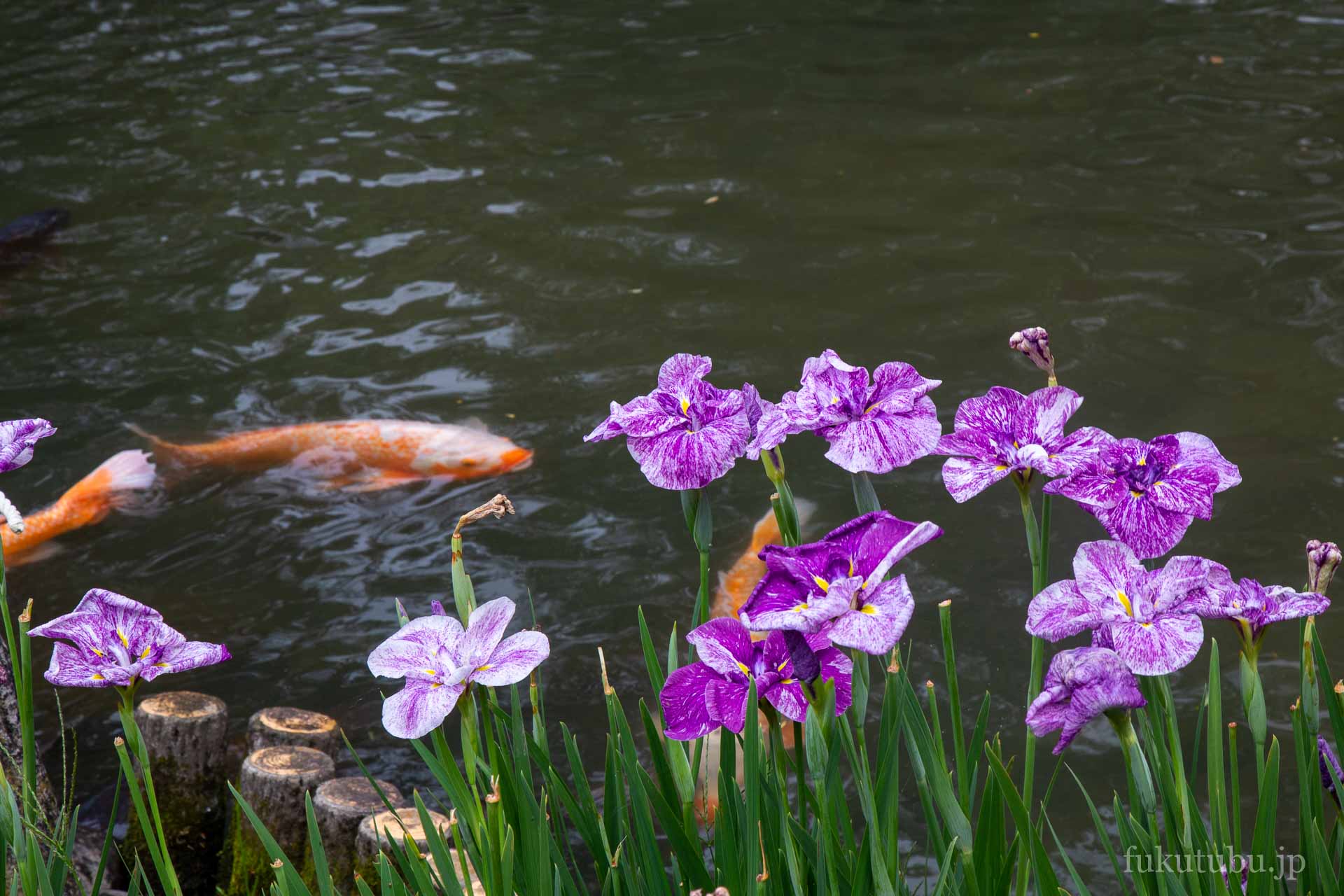 泳ぐ鯉とアヤメのコントラストも楽しませてくれます。