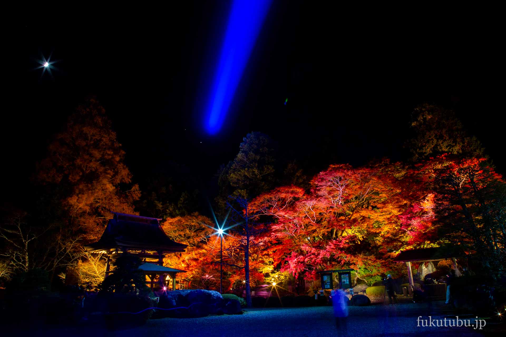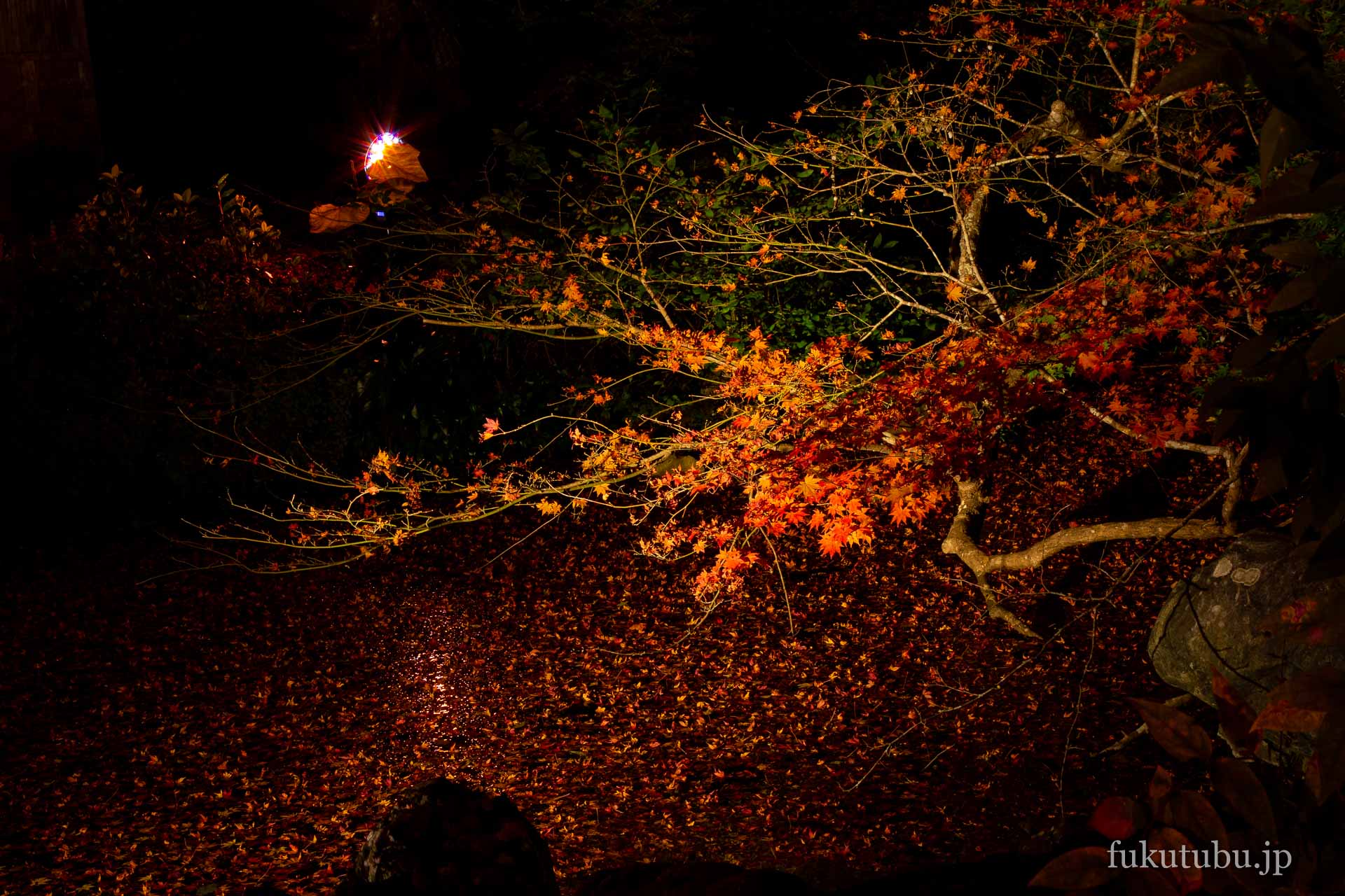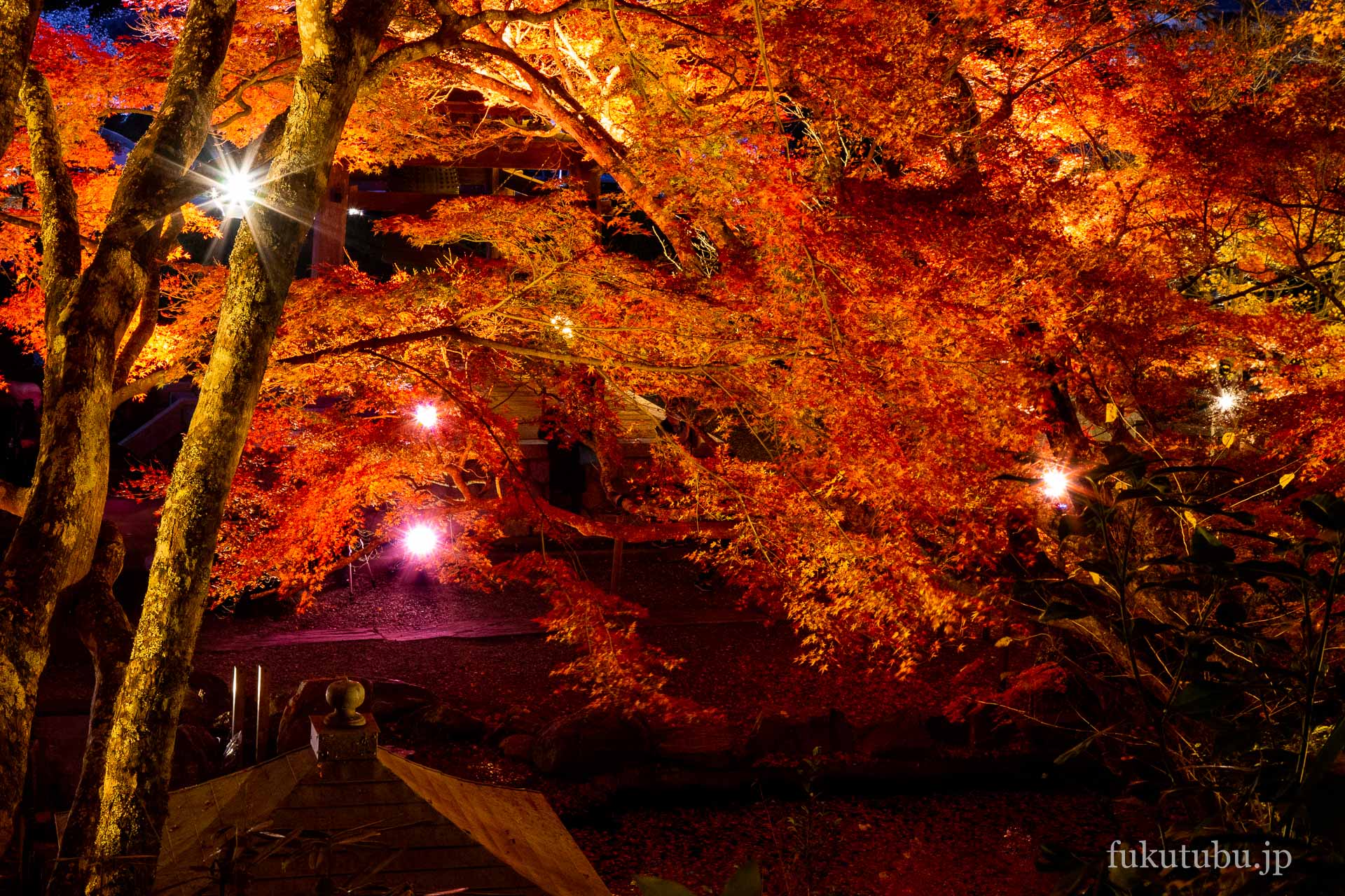 鮮やかに輝く紅葉ライトアップで、より幻想的な空間へと導かれるスポットでした。