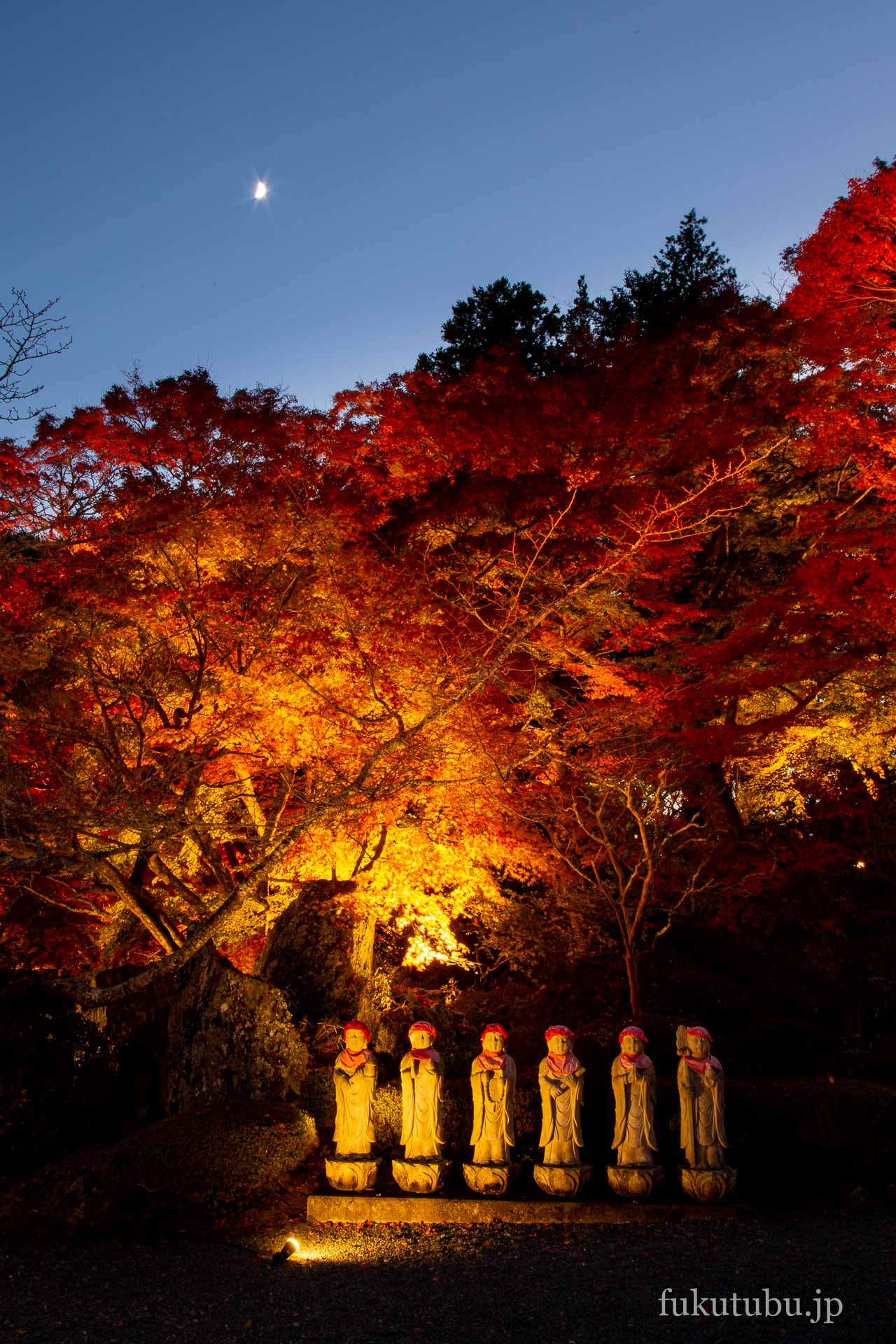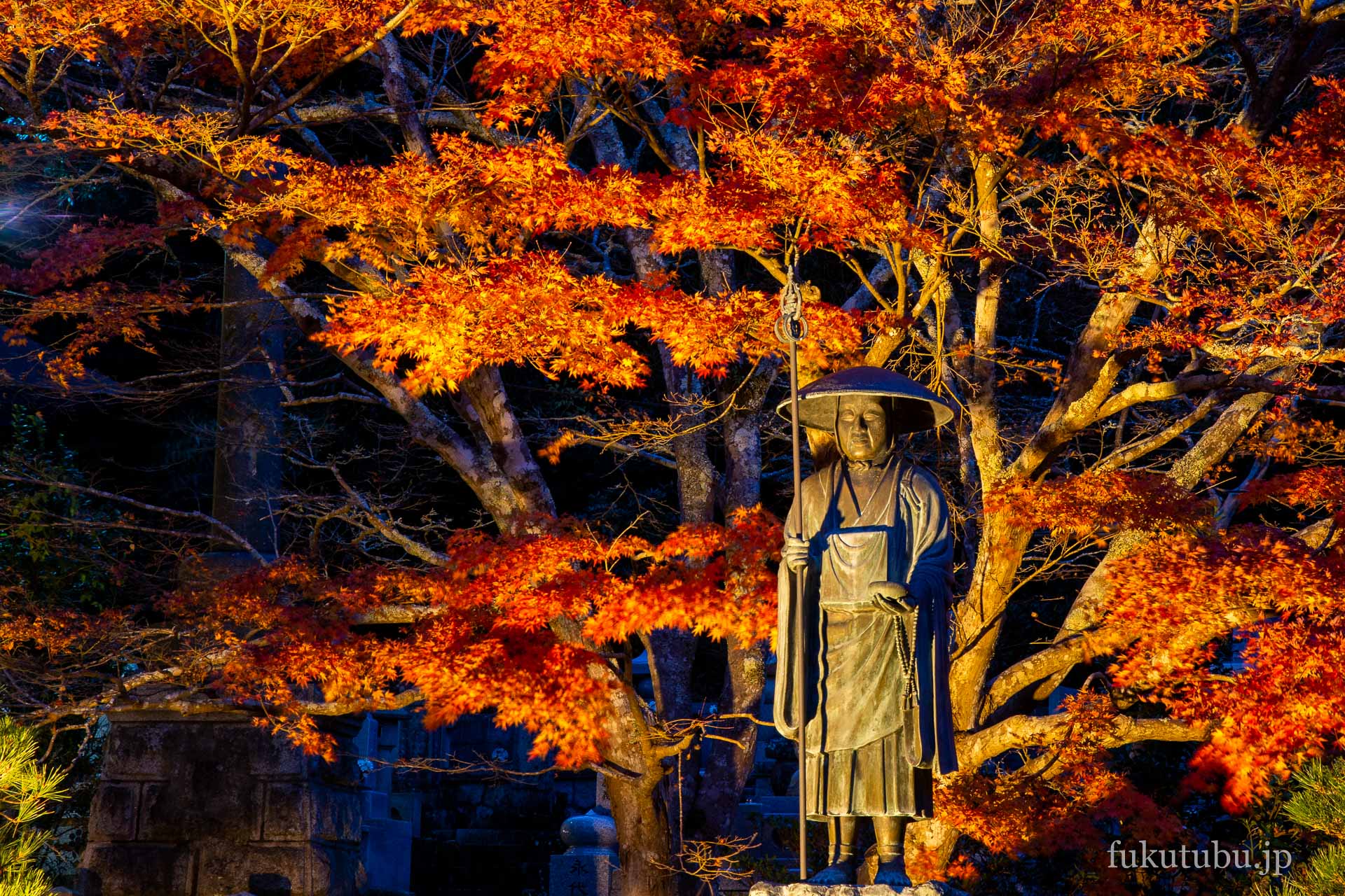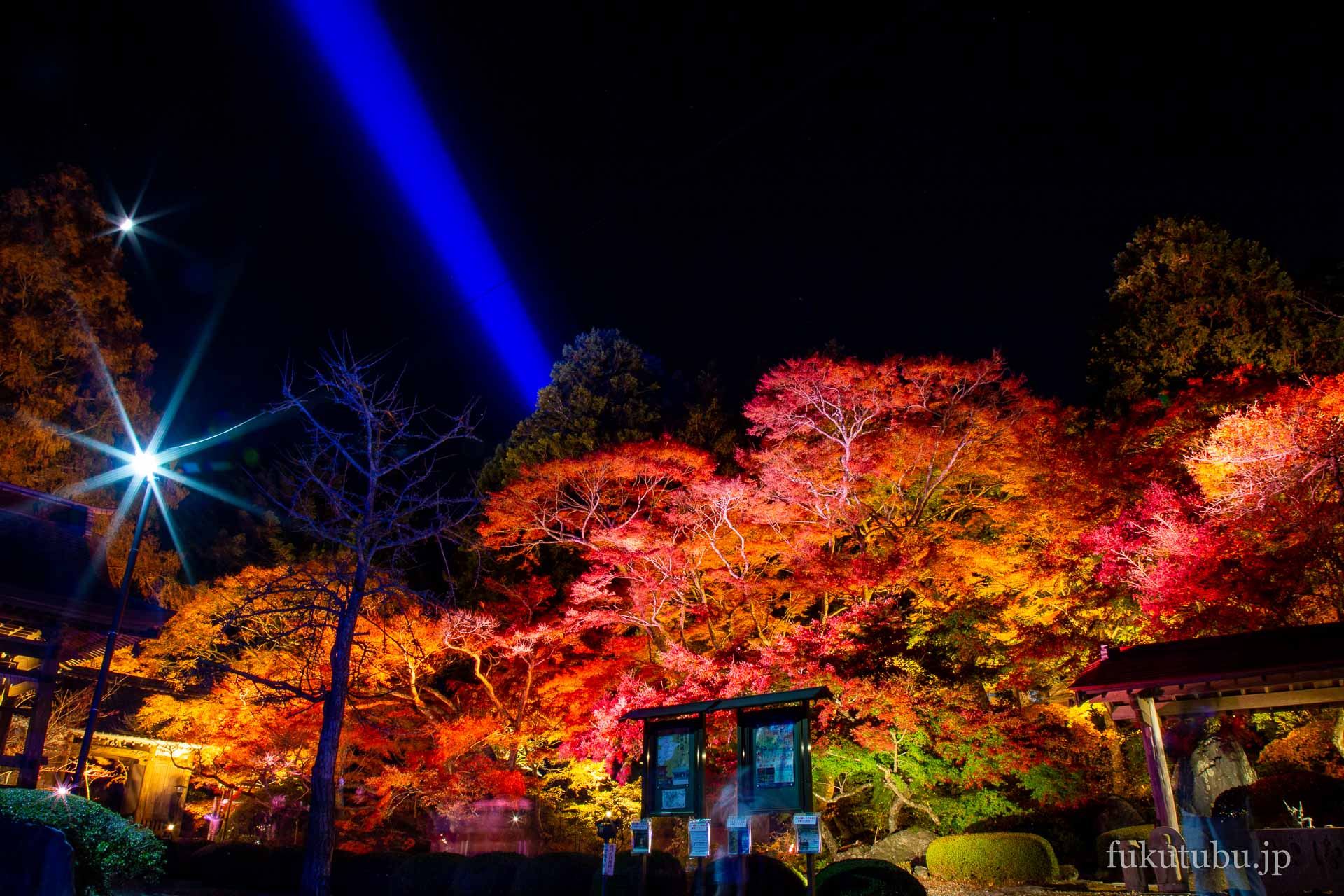 鮮やかに輝く紅葉ライトアップで、より幻想的な空間へと導かれるスポットでした。